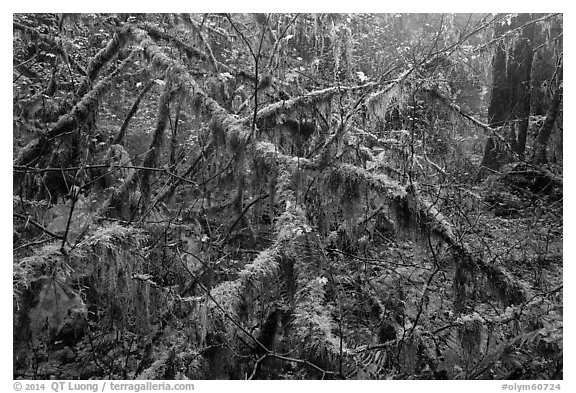 Moss-covered branches, Hoh Rain Forest. Olympic National Park, Washington, USA.