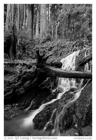 Fern Falls and redwood trees, Jedediah Smith Redwoods State Park. Redwood National Park, California, USA.
