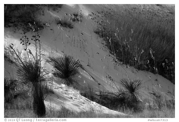 Yucca and grasses on dune flank. White Sands National Park, New Mexico, USA.