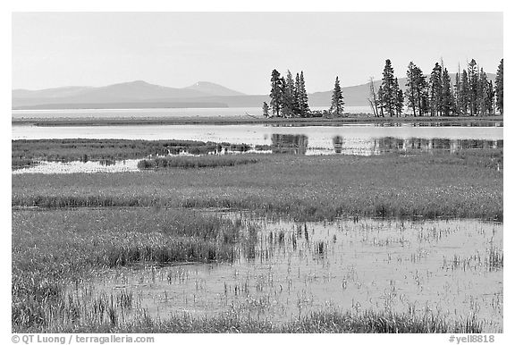 Grasses and Yellowstone Lake near Stemboat Point, morning. Yellowstone National Park, Wyoming, USA.