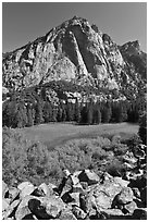 Giant Sequoias, the largest living things on earth, grow on the western slope of the luminous Sierra Nevada range, cut here by the deepest canyon in the country (depth 8,200 feet).