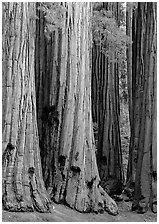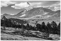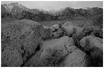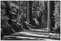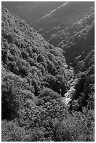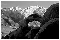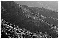 Groves of Giant Sequoias grow on the gently sloping west side of Sierra Nevada range, while the east side drops off abruply from Mt Whitney (14,495 ft), the highest mountain in the continental United States.