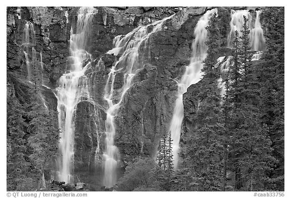 Tangle Falls and trees. Jasper National Park, Canadian Rockies, Alberta, Canada