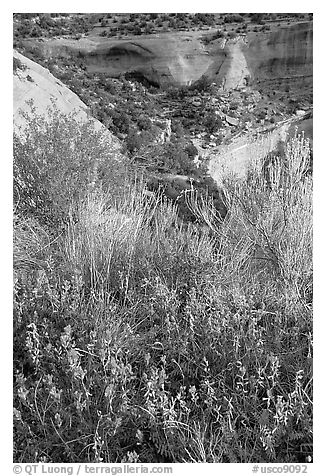 Indian Paintbrush and sandstone cliffs. Colorado National Monument, Colorado, USA