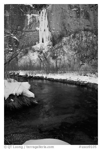 Creek and Frozen waterfall, Riffle Canyon. Colorado, USA