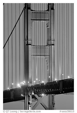 Golden Gate Bridge pillar at night. San Francisco, California, USA