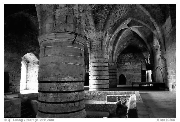Huge columns in the Knights Hospitalliers quarters, Akko (Acre). Israel