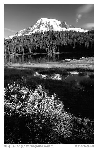 Mt Rainier and reflection, early morning. Mount Rainier National Park, Washington, USA.