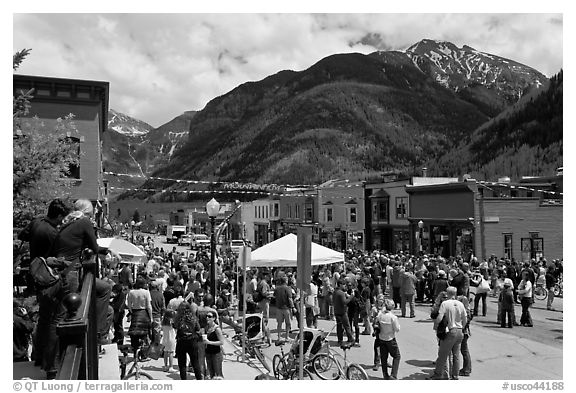 Crowds gather on main street during ice-cream social. Telluride, Colorado, USA