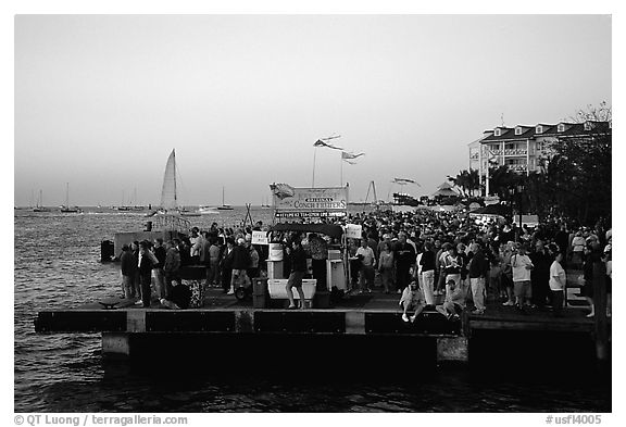 Crowds watching sunset at Mallory Square. Key West, Florida, USA