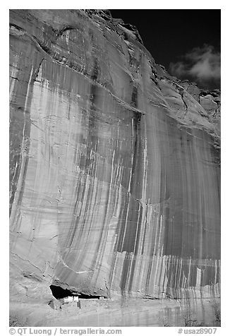 White House Ancestral Pueblan ruins and wall with desert varnish and corner of sky. Canyon de Chelly National Monument, Arizona, USA