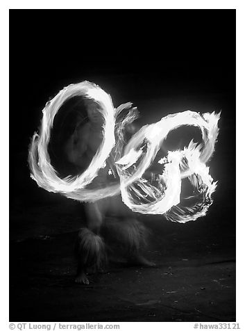 Traditional Samoan fire knife dance. Polynesian Cultural Center, Oahu island, Hawaii, USA
