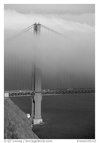 Golden Gate bridge with top covered by fog. San Francisco, California, USA |