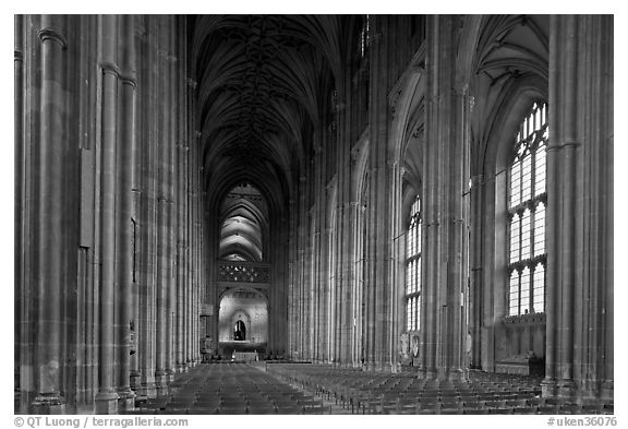 Nave, built in the Perpendicular style, Canterbury Cathedral. Canterbury, Kent, England, United Kingdom