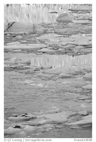 Blue Icebergs and yellow reflections of mountain face,. Jasper National Park, Canadian Rockies, Alberta, Canada
