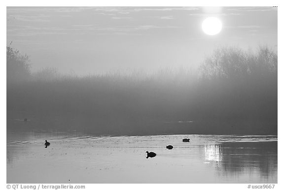 Sunrise, fog, and water birds, Kern National Wildlife Refuge. California, USA