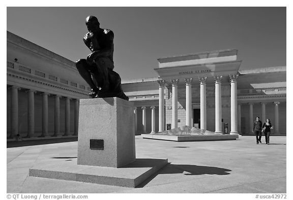 Forecourt of California Palace of the Legion of Honor with The Thinker by Auguste Rodin. San Francisco, California, USA