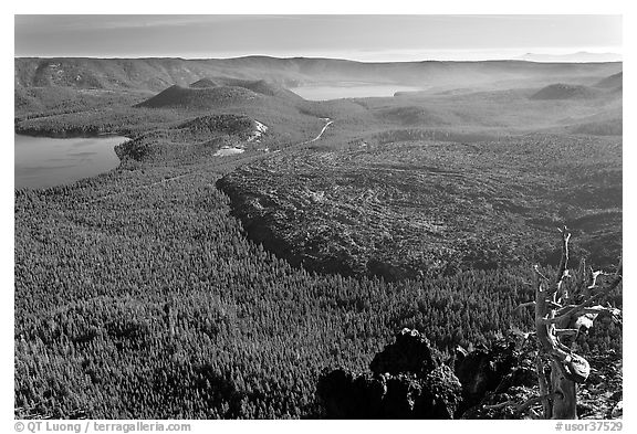 Lakes and lava flow, early morning. Newberry Volcanic National Monument, Oregon, USA