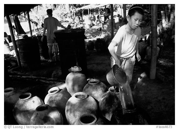 Making of the Lao Lao, strong local liquor in Ban Xang Hai village. Laos