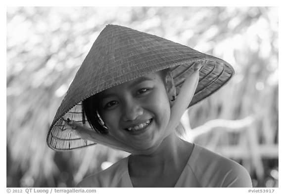 Portrait of girl with conical hat, Phoenix Island. My Tho, Vietnam