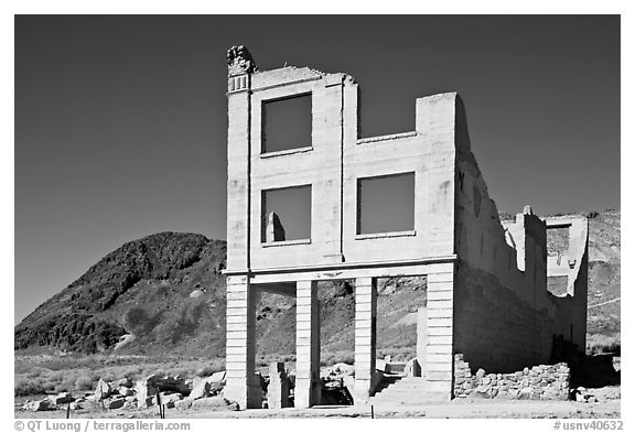 Ruined bank in Ryolite ghost town. Nevada, USA