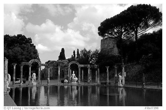 Antique statues along the Canopus, Villa Adriana. Tivoli, Lazio, Italy