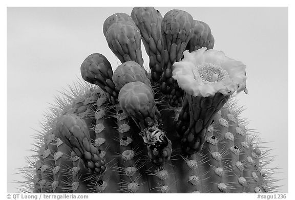 Saguaro flower on top of cactus. Saguaro National Park, Arizona, USA.
