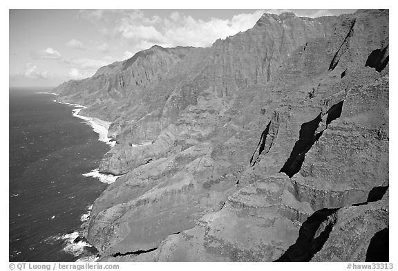 Aerial view of coastline, Na Pali Coast. Kauai island, Hawaii, USA