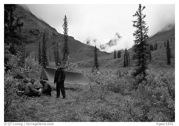 Backpackers camp in Arrigetch Valley. Gates of the Arctic National Park, Alaska