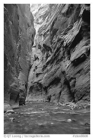 Slot canyon like walls, Wall Street, the Narrows. Zion National Park, Utah, USA.