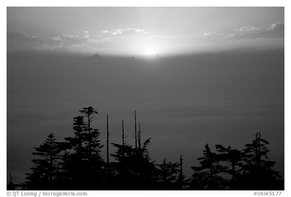 Sunset over a sea of clouds. Emei Shan, Sichuan, China