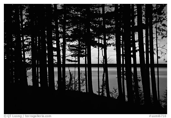 Lake Superior seen through dense trees at sunset, Pictured Rocks National Lakeshore. Upper Michigan Peninsula, USA |