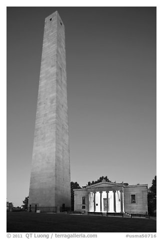 Bunker Hill Monument and exhibit lodge at dawn, Charlestown. Boston, Massachussets, USA