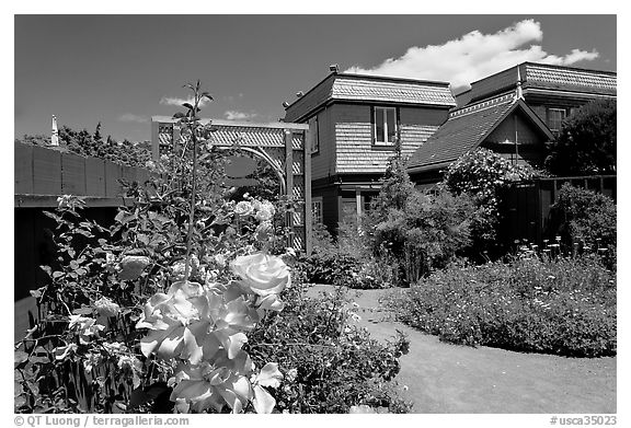 Roses in backyard. Winchester Mystery House, San Jose, California, USA