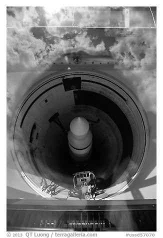 Missile silo with sky reflected in glass. Minuteman Missile National Historical Site, South Dakota, USA