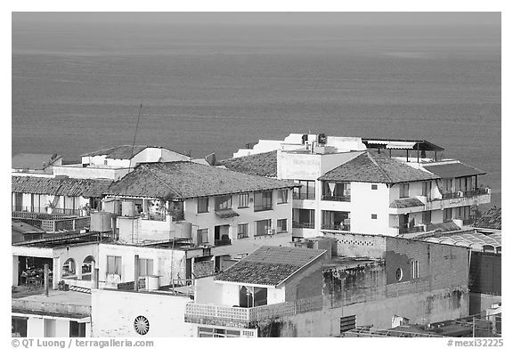 White adobe buildings with red tiled roofs, Puerto Vallarta, Jalisco. Jalisco, Mexico