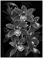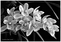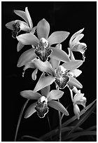 If you think orchids are dainty plants that can not wait to die the moment you turn you back, then try the Cymbidium. They are very rewarding orchids for growers in the temperate zone. Again, the general image of a Cymbidium for most of the population is the standard, corsage type flower or the plant with star-shaped blooms on upright spikes from the potted plant trade. There are more. Recently, Cymbidiums with arching or pendulous flowers are gaining much interest, along with the ultra miniatures that bloom in a 4-inch pot. And then, there are the graceful, fragrant hybrids from the Orient, plus those with cup-shape blooms from the Japanese hybridizers, not to mention the freak clones with stripes petals or multiple floral parts. The images in this gallery are all from our Cymbidium collection.