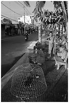 Couple on barge, Long Binh River. Tra Vinh, Vietnam ( black and white) Barge loaded with coconuts. Tra Vinh, Vietnam ( black and white) Chicken and roosters encaged on sidewalk. Tra Vinh, Vietnam ( black and white) Man feeding chicken. Tra Vinh, Vietnam ( black and white) Bicycles on riverfront street. Tra Vinh, Vietnam ( black and white) Schoolgirls on bicycles. Tra Vinh, Vietnam ( black and white) Woman vending food out of bicycle. Tra Vinh, Vietnam ( black and white) Woman bicycling in front of church. Tra Vinh, Vietnam ( black and white) Ancient carved stone tombs. Tra Vinh, Vietnam ( black and white) Funeral vehicle. Tra Vinh, Vietnam ( black and white) Vo Family cemetery. Tra Vinh, Vietnam ( black and white) Woman in field of vegetables. Tra Vinh, Vietnam ( black and white) Tombs. Tra Vinh, Vietnam ( black and white) Church. Tra Vinh, Vietnam ( black and white) Church interior. Tra Vinh, Vietnam ( black and white) Church interior. Tra Vinh, Vietnam ( black and white) Church interior. Tra Vinh, Vietnam ( black and white) Church bell. Tra Vinh, Vietnam ( black and white) Church nave. Tra Vinh, Vietnam ( black and white) Church altar. Tra Vinh, Vietnam ( black and white) Fruit vendor on main street at night. Tra Vinh, Vietnam ( black and white) Main street and telecomunication tower at night. Tra Vinh, Vietnam ( black and white)