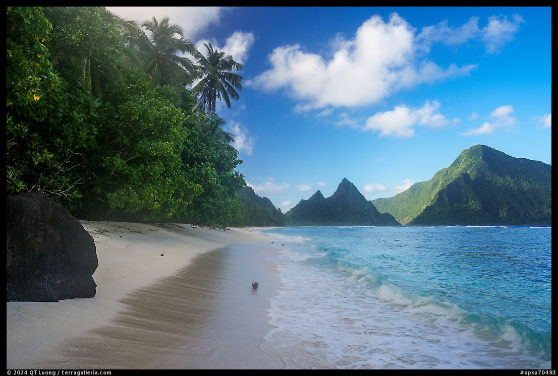 My friend Tommy travels without plans or expectations. This approach, increasingly popular with some photographers, guarantees he won’t experience disappointments that can mar even a trip to a paradisiac tropical island. However, for the National Park of American Samoa (read some background, or a comprehensive practical guide to Ofu that provides a perspective complementary to this travel story) it would have been difficult for me to embrace, because I had been there before and knew what I missed then. The label for my National Park of American Samoa photograph in the exhibit Treasured Lands starts as follows: