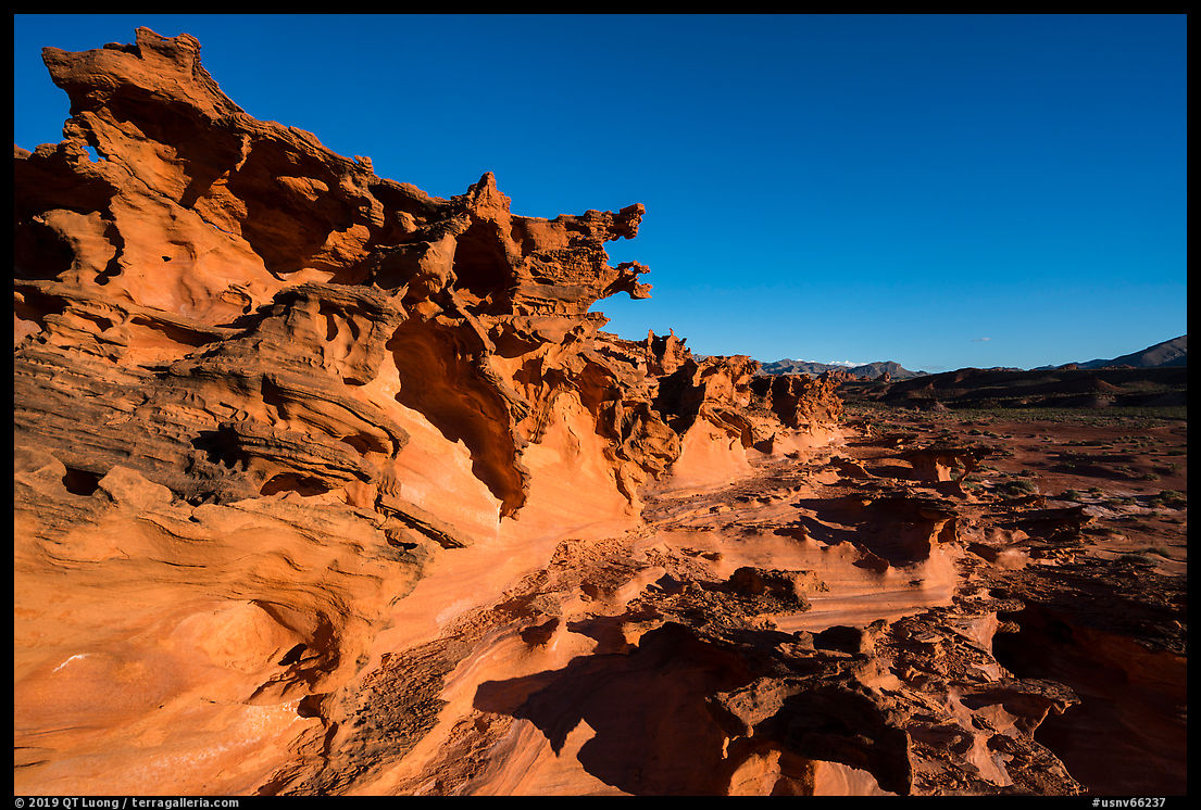 A rough paved road leads to Whitney Pocket in 21 miles from NV 170 south of Mesquite. The area reminded me of the Mojave part of Joshua Tree National Park since many Joshua trees grow there among interesting rock formations. However, while the iconic rocks in Joshua Tree National Park are granitic, those in Gold Butte National Monument are more varied and include red aztec sandstone striped with rainbow colors like at Valley of Fire State Park. Some of those rocks shelter primitive campsites with no water where you can stay for free and without a permit. Whitney Pocket is your first hint of the geological diversity of the monument. Over 1.3 billion years of geologic history are exposed in its layers, including an interval of strata missing from the Grand Canyon.