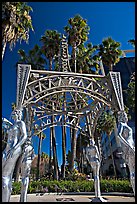 Street with liquor and pawn shops. Hollywood, Los Angeles, California, USA ( color) Water tower, Paramount Pictures lot. Hollywood, Los Angeles, California, USA ( color) New York backlot, Paramount Pictures Studios. Hollywood, Los Angeles, California, USA ( color) Shadows outside the sound stages, Studios at Paramount lot. Hollywood, Los Angeles, California, USA ( color) Red carpet and Blue Sky Tank, Paramount Pictures Studios. Hollywood, Los Angeles, California, USA ( color) Woman looking at mural of sky and wispy clouds, Studios at Paramount. Hollywood, Los Angeles, California, USA ( color) Corner of the Blue Sky Tank, Studios at Paramount. Hollywood, Los Angeles, California, USA ( color) Plants and forest backdrop, Paramount lot. Hollywood, Los Angeles, California, USA ( color) Forest decor and potted plant, Paramount Pictures Studios. Hollywood, Los Angeles, California, USA ( color) Room with rockets, Paramount Pictures Studios. Hollywood, Los Angeles, California, USA ( color) Gazebo with statues of Dorothy Dandridge, Dolores Del Rio, Mae West,  and Anna May Wong. Hollywood, Los Angeles, California, USA ( color) Statue of actress  Dorothy Dandridge. Hollywood, Los Angeles, California, USA ( color) People dressed as Star Wars characters in front of the Kodak Theater, home of the Academy Awards. Hollywood, Los Angeles, California, USA ( color) Babylon court of the Hollywood and Highland complex. Hollywood, Los Angeles, California, USA ( color) White elephants, replicas from the set of the Griffith movie Intolerance. Hollywood, Los Angeles, California, USA ( color) Arch in Hollywood and Highland framing the Hollywood sign. Hollywood, Los Angeles, California, USA ( color) Facade of the El Capitan theater in Spanish colonial style. Hollywood, Los Angeles, California, USA ( color) Spanish colonial facade of the El Capitan theatre. Hollywood, Los Angeles, California, USA ( color) Stars of the Walk of fame in front of the  El Capitan Theatre. Hollywood, Los Angeles, California, USA ( color) Box office of El Capitan Theatre. Hollywood, Los Angeles, California, USA ( color) Footprints and handprints of Jack Nicholson in the Grauman theatre forecourt. Hollywood, Los Angeles, California, USA ( color) Grauman Chinese Theatre at dusk. Hollywood, Los Angeles, California, USA ( color) Grauman Chinese Theater at night. Hollywood, Los Angeles, California, USA ( color) Main gate of Grauman Chinese Theatre at night. Hollywood, Los Angeles, California, USA ( color) Hollywood and Highland shopping complex at night. Hollywood, Los Angeles, California, USA ( color)
