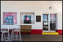 Clouds above desert mountains. California, USA ( color) Freight train in desert. California, USA ( color) Long train in the Mojave desert. California, USA ( color) Salt flats,  Mojave desert. California, USA ( color) Salt flats near Amboy. California, USA ( color) Palm trees and fields in oasis, Imperial Valley. California, USA ( color) Mineral extraction site. California, USA ( color) Electricity-generating Windmills, Horned Toad Hills near Mojave. California, USA ( color) National Trails Highway route 66 marker. California, USA ( color) Route 66 marking, Amboy. California, USA ( color) Roys Cafe and gas station, Amboy. California, USA ( color) Roys Cafe, Amboy. California, USA ( color) Post Office, Amboy. California, USA ( color) Roys Motel, Amboy. California, USA ( color) Roys gas pump, Amboy. California, USA ( color) Roys gas station, Amboy. California, USA ( color) Horse sculpture, Amboy. California, USA ( color) Lucerne Valley Elementary School. California, USA ( color) Self-storage units with Joshua trees, Yucca Valley. California, USA ( color) Tank at the General George S. Patton Memorial Museum, Chiriaco Summit. California, USA ( color) Store at night, Pioneertown. California, USA ( color) Pioneertown at night. California, USA ( color)
