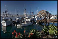 Fishing boats and Morro Rock, sunrise. Morro Bay, USA ( color) Baat with rusted hull and Morro Rock. Morro Bay, USA ( color) Fishing boats reflected in harbor,  and Morro Rock, early morning. Morro Bay, USA ( color) Dredge boat and Morro Rock. Morro Bay, USA ( color) Flowers, harbor, and Morro Rock, morning. Morro Bay, USA ( color) Harbor and Morro Rock, morning. Morro Bay, USA ( color) Deck, harbor, and Morro Rock. Morro Bay, USA ( color) Yachts and Morro Rock. Morro Bay, USA ( color) Morro Rock engulfed by afternoon fog. Morro Bay, USA ( color) Beach with seaweed, and Morro Rock capped by afternoon fog. Morro Bay, USA ( color) Motorized paraglider, women walking dog, with Morro Rock in the distance. Morro Bay, USA ( color) Women walking dog on the beach, with Morro Rock behind. Morro Bay, USA ( color) Fishing fleet and Morro Rock, sunset. Morro Bay, USA ( color) Fishing boats and Morro Rock, sunset. Morro Bay, USA ( color) Lighted fishing boats and Morro Rock. Morro Bay, USA ( color)