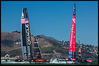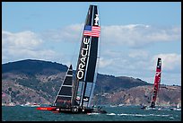In September 2013, San Franciso hosted for the first time America's Cup, the oldest trophy in international sport. The 34th edition consisted of a series of boat races between the defender, Oracle Team USA, and the challenger, Emirates Team New Zealand. It was the longest America's Cup, not only because of the best of 17 format, but also because it went to a winner-take-all race (for only the third time in the America's Cup history). At the same time, it was the fastest America's Cup, thanks to the use of high-tech 72 feet catamarans with wing sails 131 feet high. After being led 1-8, Oracle Team USA mounted an extraordinary comeback, winning the 8 last races. Images on this page are from the decisive race, which took place on September 25, 2013, with both teams tied to 8 all. New Zealand led on the first downwind race, but USA took advantage of superior upwind speed to overtake and then cruise to victory.