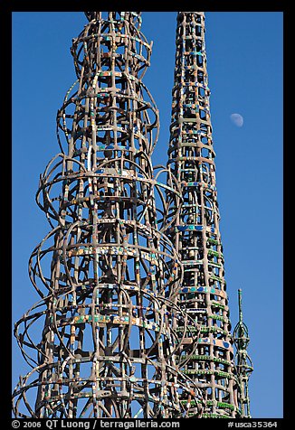 Watts towers and moon. Watts, Los Angeles, California, USA