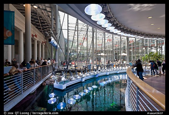 Special lamps recreate sunlight on top of Coral Reef tank, California Academy of Sciences. San Francisco, California, USA