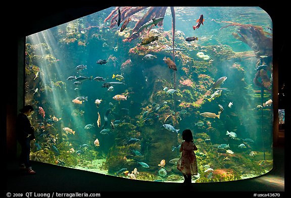 Girl looks at Northern California Aquarium, California Academy of Sciences. San Francisco, California, USA