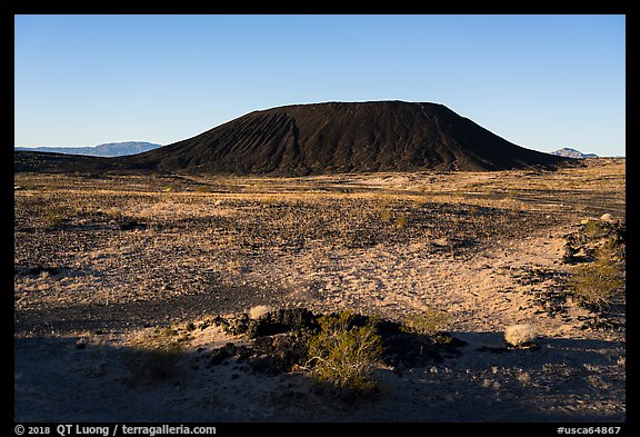 Lava field and Amboy Crater cinder cone. Mojave Trails National Monument, California, USA