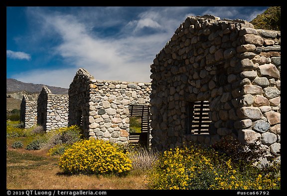 Ruined stone cabins. Sand to Snow National Monument, California, USA