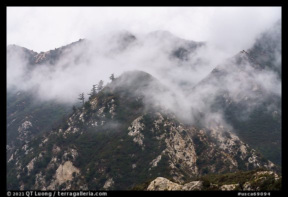 Peaks in fog above Bear Canyon. San Gabriel Mountains National Monument, California, USA